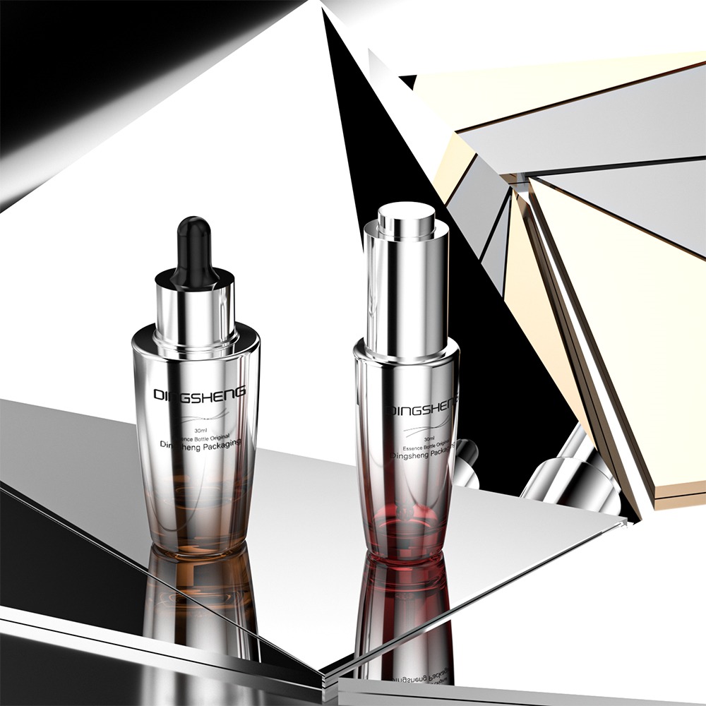 Spray Painting / ElectroplatingThe 30ml Electroplated Gradient Pump Dropper Bottle is an elegant and practical packaging solution designed for essence, serum, and essential oil products. Crafted from premium glass with a luxurious electroplated gradient finish, this dropper bottle combines beauty and functionality, providing both visual appeal and excellent product protection. The semi-transparent design allows easy monitoring of the remaining content, while the precision pump dropper ensures clean and controlled dispensing, preventing waste and contamination.