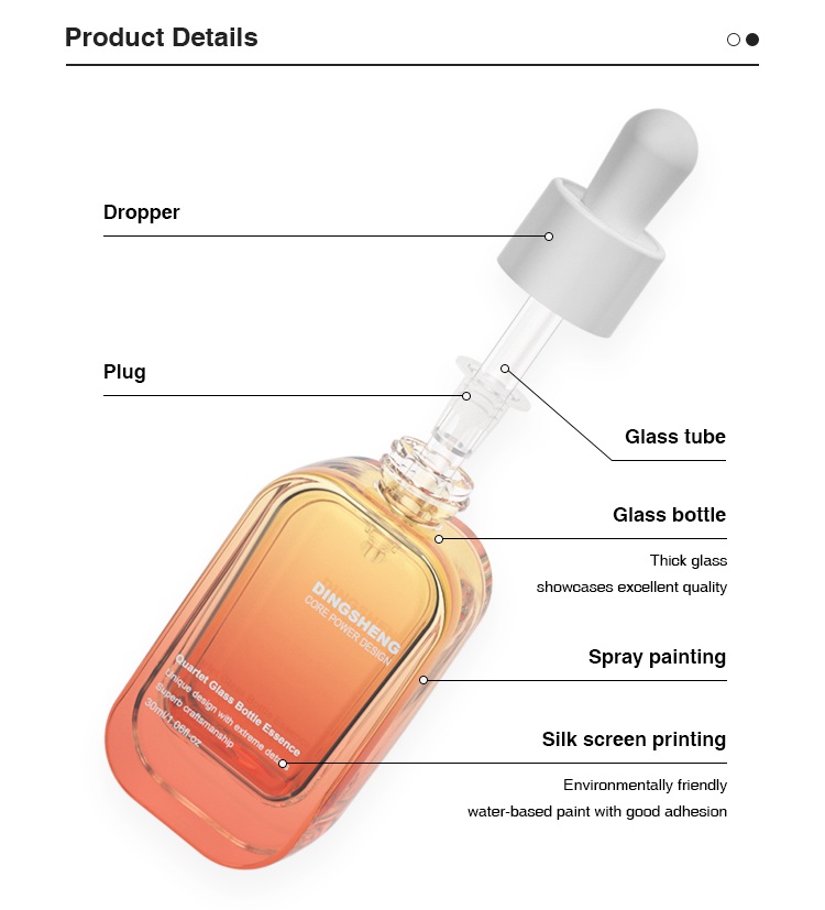 Manufactured by Dingsheng (Guangdong) Glass Technology Co., Ltd., a company with over ten years of experience in cosmetic packaging production, the bottle is produced in a 100,000-level dust-free workshop and undergoes multiple quality inspections to guarantee flawless craftsmanship. Dingsheng integrates advanced glass molding, spraying, and printing technologies, offering eco-friendly and pollution-free finishes that meet international quality standards.