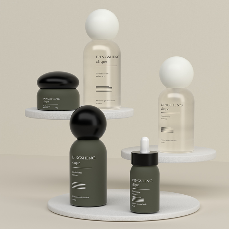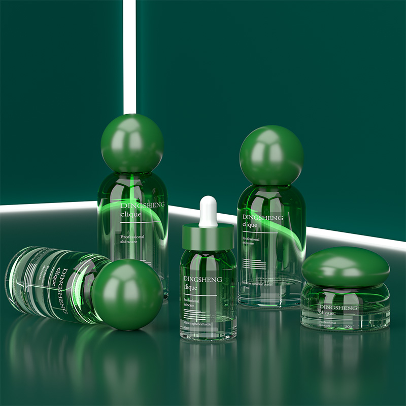 Professional Skincare Lines: The cohesive design language, characterized by the matte green finish and spherical caps, is the ideal choice for launching unified, high-end "clique" or professional salon-grade skincare collections.