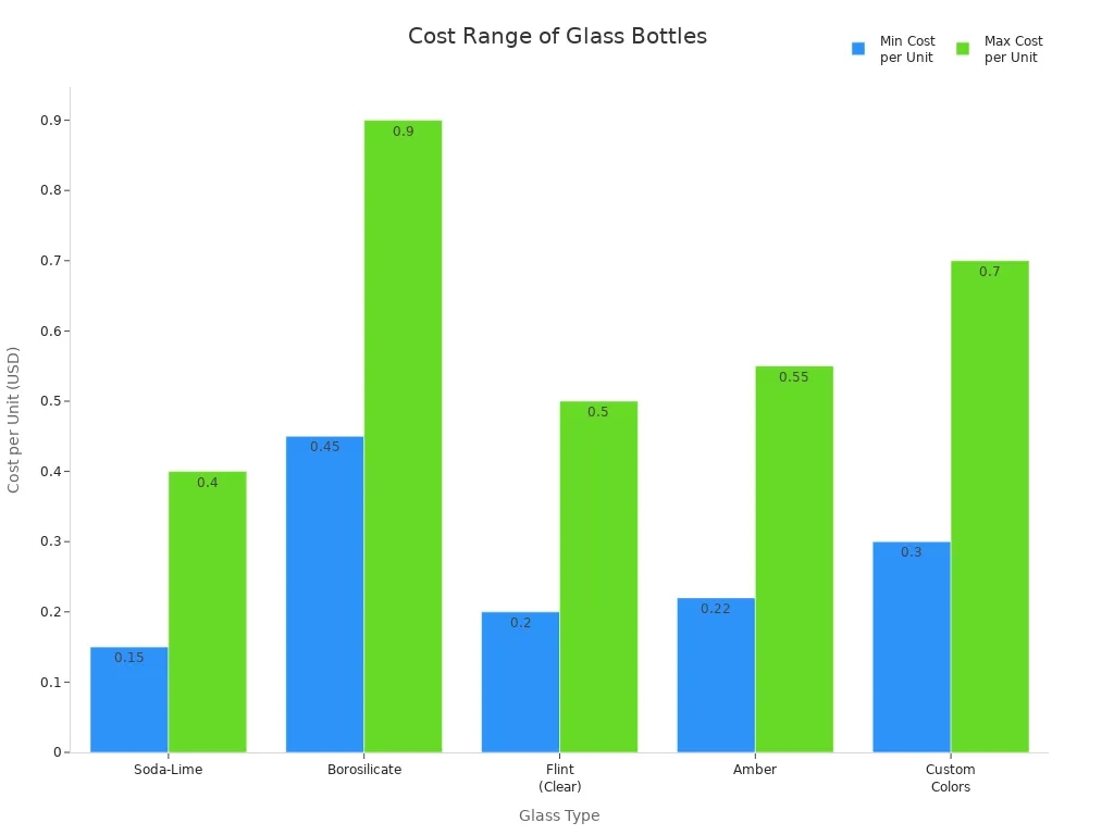 Cost remains a critical factor in packaging decisions. High-quality glass bottles vary in price depending on material and customization. The following table outlines typical cost ranges: