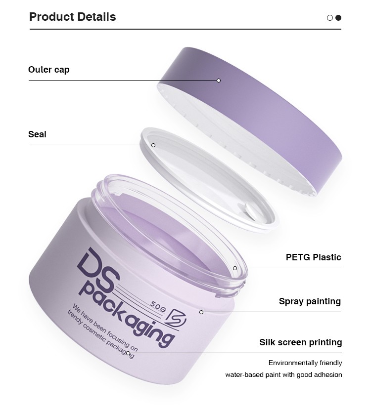 Spray Painting / ElectroplatingTranslucent Matte PETG Plastic Facial Cream Jar — a refined packaging solution engineered for modern skincare brands. Available in 50g, 30g, 20g, 15g, 10g, and 5g sizes, these jars combine a soft matte finish with PETG durability to present creams and eye treatments in an elegant, user-friendly format.